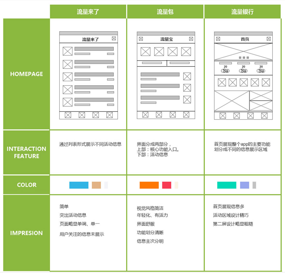 首頁(yè)界面布局/核心功能/色彩/總印象/對(duì)比