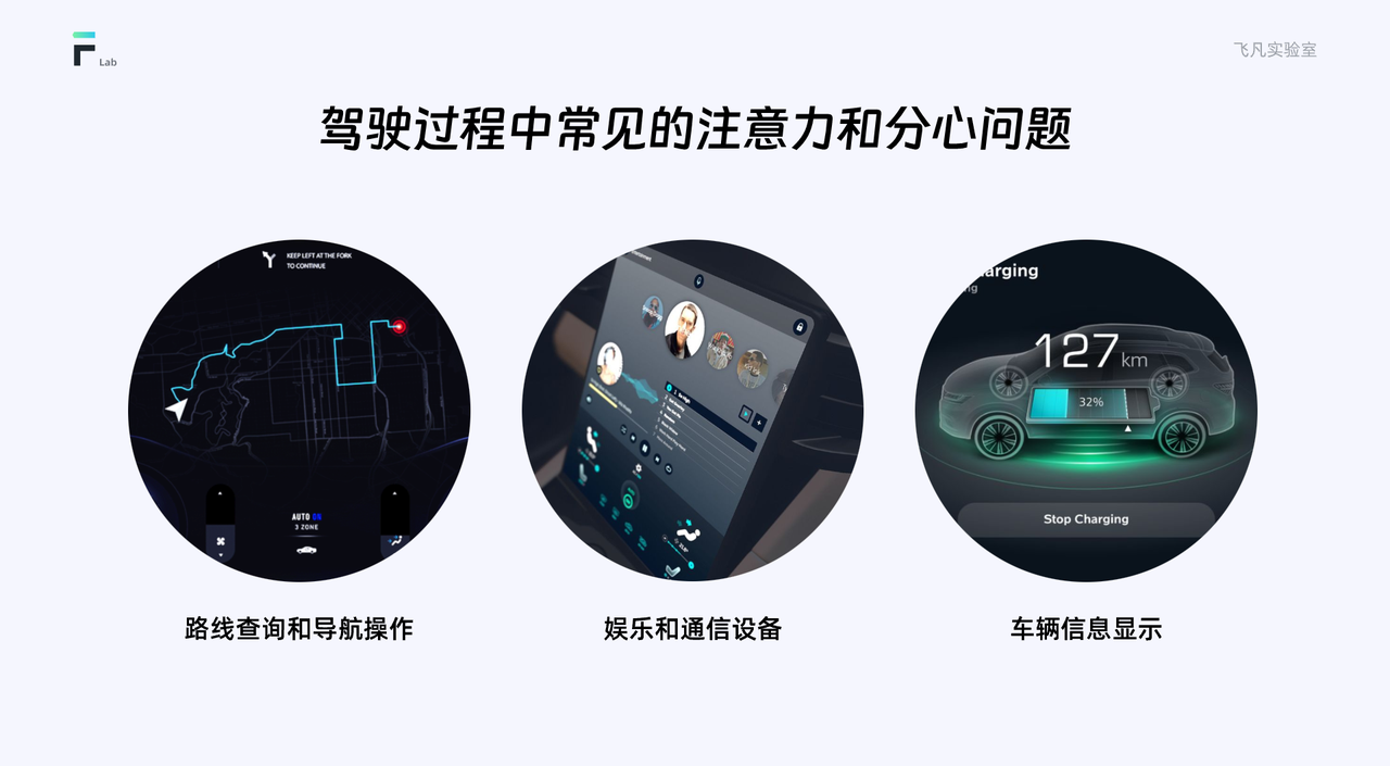 在駕駛過程中,有一些常見的注意力和分心問題需要我們關(guān)注和解決。路線查詢和導(dǎo)航操作:駕駛員需要查看導(dǎo)航系統(tǒng)、調(diào)整路線和尋找目的地等操作,這可能轉(zhuǎn)移駕駛員的注意力,導(dǎo)致駕駛員對道路情況的關(guān)注度下降。娛樂和通信設(shè)備:駕駛員使用娛樂系統(tǒng)或通信設(shè)備進行音樂播放、電話通話或信息發(fā)送等操作,這會分散駕駛員的注意力,增加駕駛風(fēng)險。車輛信息顯示:車輛上的信息顯示系統(tǒng)可能包含大量的信息,如車速、油耗、車輛故障等,駕駛員需要分散注意力去獲取和理解這些信息,這可能影響駕駛員對道路情況的感知和對緊急情況的反應(yīng)能力。了解駕駛員的注意力和分心因素對于優(yōu)化車載界面設(shè)計至關(guān)重要。那么我們?nèi)绾螏椭{駛員保持集中注意力,并減少分心情況的發(fā)生。
