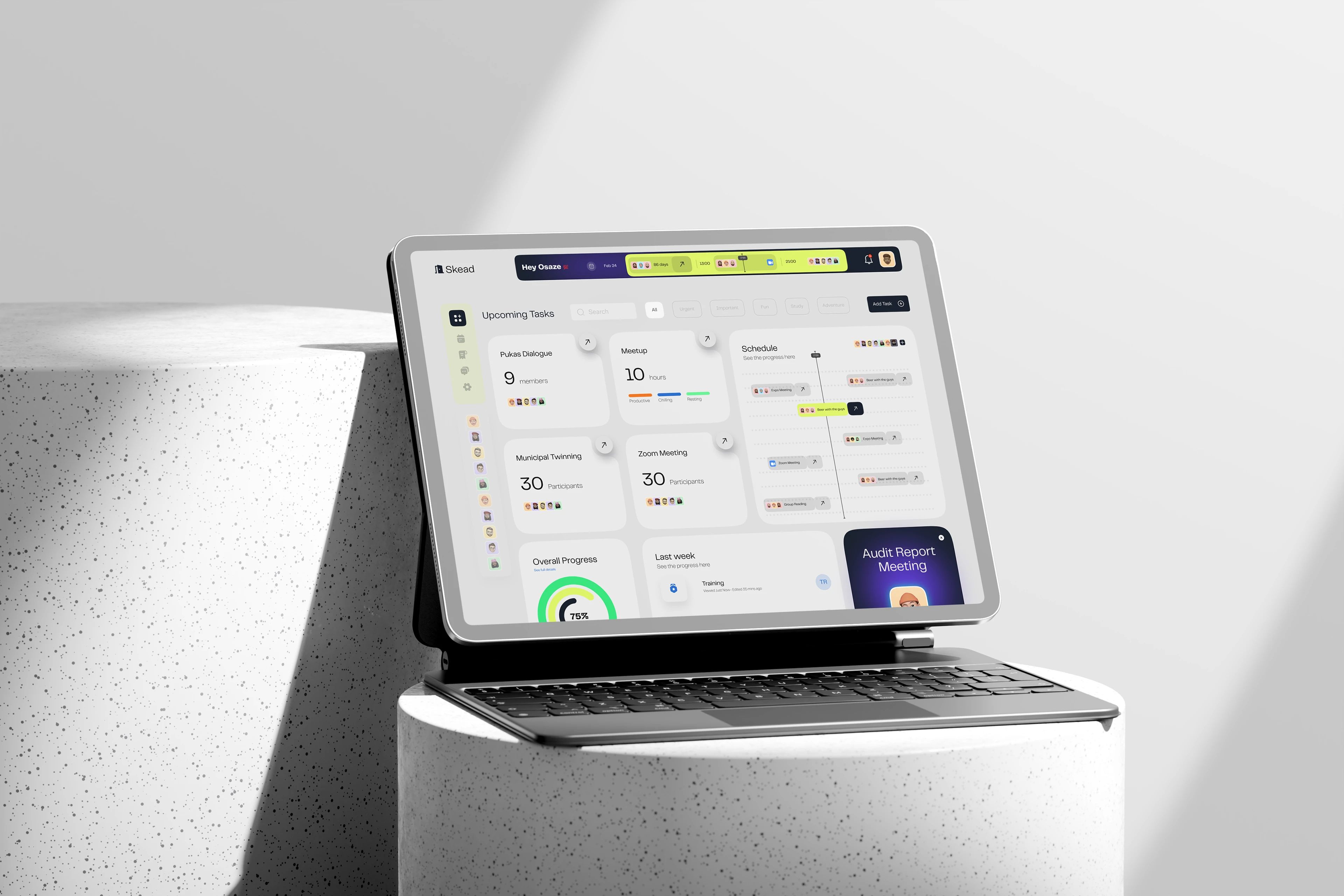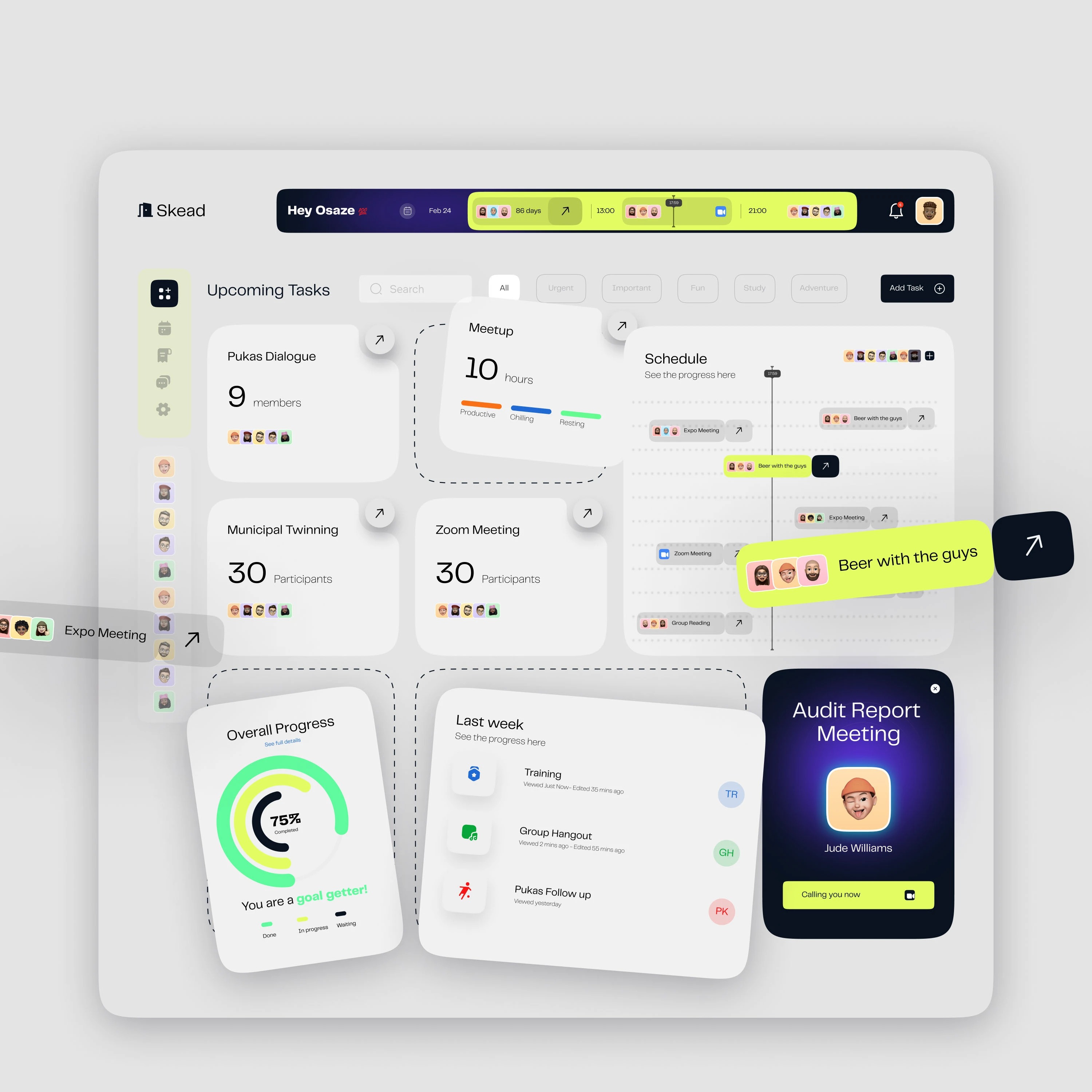模塊化卡片布局 —— 信息拆分為獨(dú)立卡片,任務(wù)、進(jìn)度、日程分區(qū)清晰。