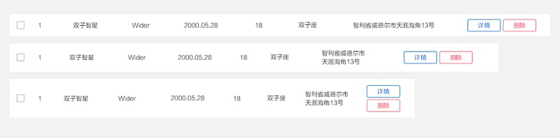 當寬度拖到第三種情況,按鈕也出現(xiàn)了換行,那每一行的高度都應(yīng)該按照這個高度保持一致,即使有一些數(shù)據(jù)只有一個按鈕/地址并沒有出現(xiàn)換行,如圖:
