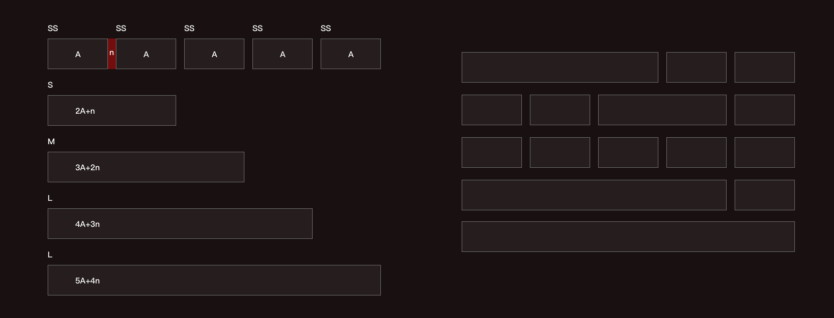 采用這樣的處理方式時(shí),需要提前預(yù)知用戶填寫該字段內(nèi)容的最大寬度與最小寬度,中和這兩個(gè)極值選擇合適的輸入框?qū)挾?。由此我們將?huì)得到5種梯度的輸入框,如下圖例