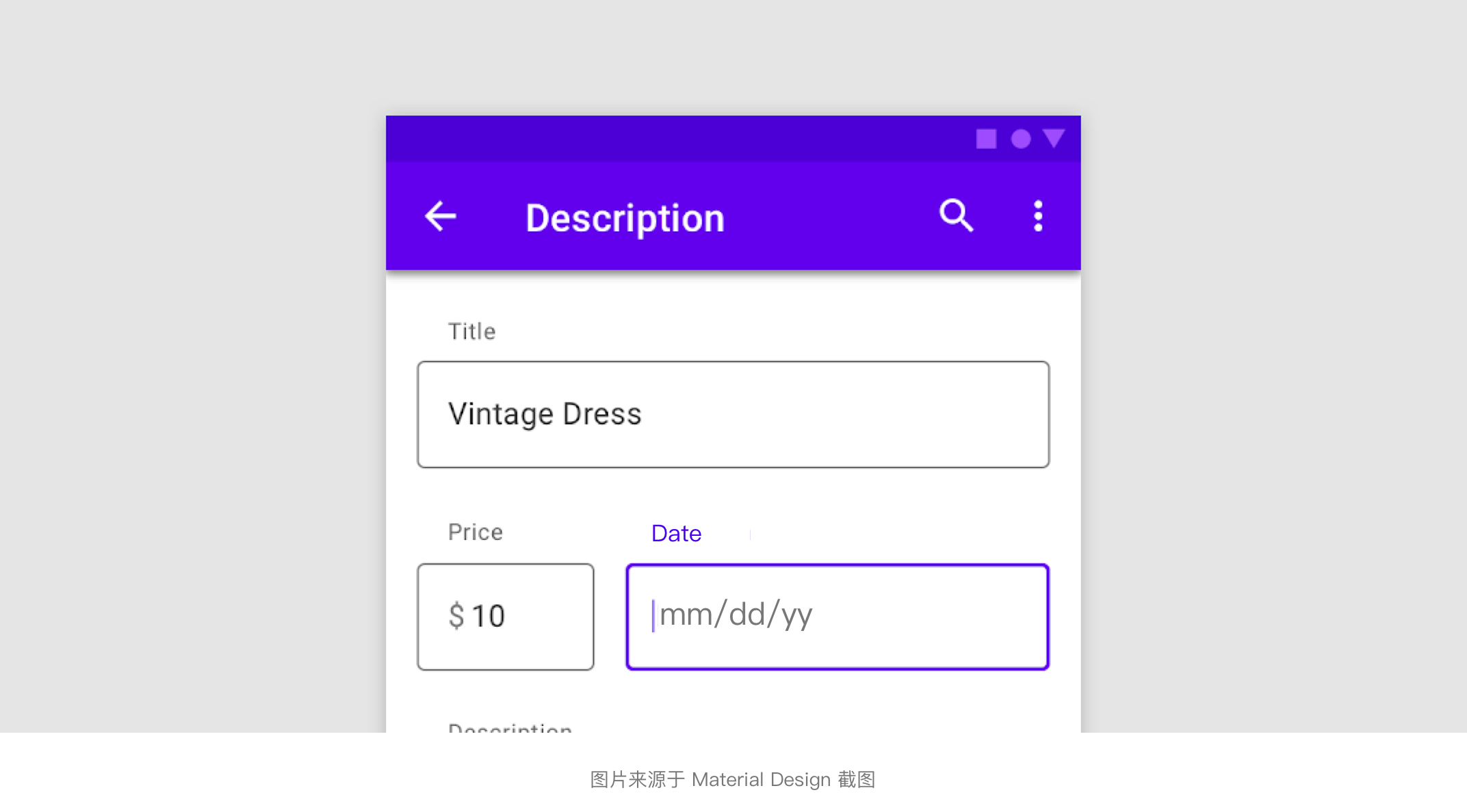 針對(duì)上面問題也不是沒有解決方案,在Material Design中有提供針對(duì)上面的問題的解決方案,我們這邊暫時(shí)稱其為“浮動(dòng)標(biāo)簽”,默認(rèn)情況下輸入框內(nèi)顯示占位文本,當(dāng)用戶輸入內(nèi)容以后占位文本浮動(dòng)到內(nèi)容上方與內(nèi)容左對(duì)齊。