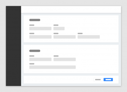 卡片分組布局一般用來處理高復(fù)雜類型表單。當(dāng)業(yè)務(wù)中希望頁(yè)面承載眾多表單字段時(shí),可將信息相關(guān)性弱的字段拆分為多個(gè)部分,并通過多個(gè)卡片分組承載不同類型字段,每個(gè)卡片都需有個(gè)卡片類別標(biāo)題。