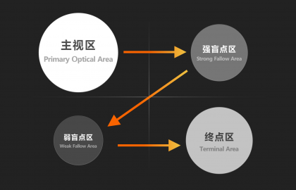 所以,界面中的左上和右下是用戶視覺最為重點(diǎn)關(guān)注的位置。遵循古騰堡法則,設(shè)計(jì)師應(yīng)該把界面的關(guān)鍵元素放在主視區(qū),終點(diǎn)區(qū)可以放按鈕、強(qiáng)提示,盲點(diǎn)區(qū)可以用來放一些相對(duì)次要的內(nèi)容,如輔助圖形、文字信息。