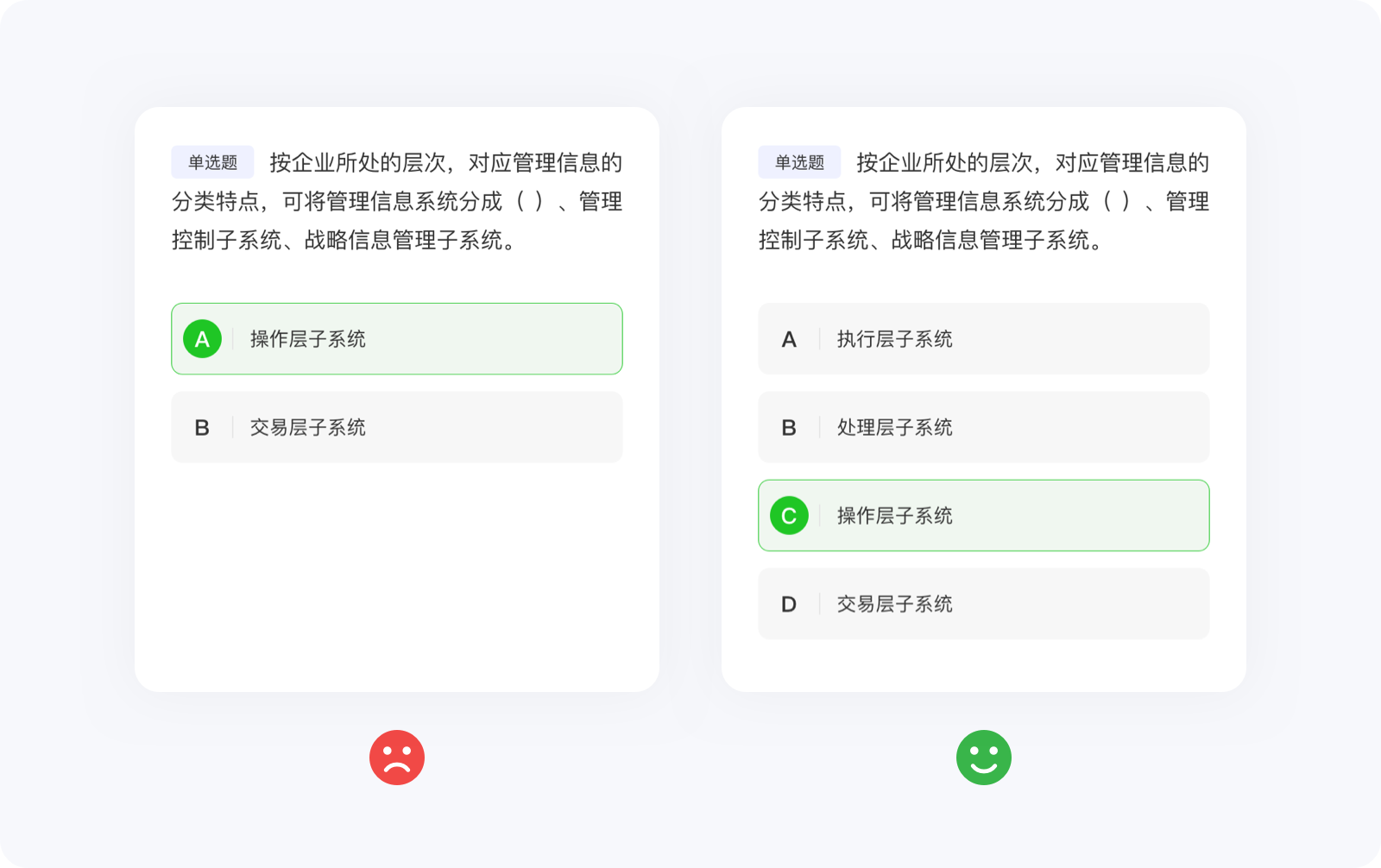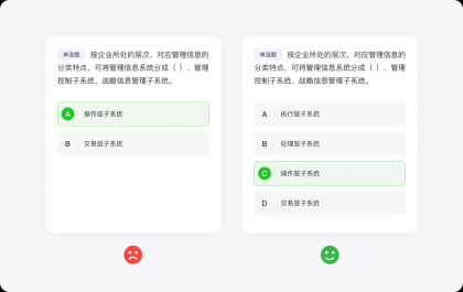 任何定律都有其自身的使用局限,所以也不要極度推崇??硕啥喕匠橄蟮牡夭?。大部分情況下,??硕啥际怯迷诳山换ソ缑嬷械脑?,對于那些需要高度搜索、閱讀或?qū)W習刷題類的功能并不適用,因為設(shè)計師只能決定信息呈現(xiàn)的視覺效果,并不能決定內(nèi)容的質(zhì)量、類型與數(shù)量。例如,刷題類應(yīng)用,面對海量的選擇題,??硕呻m然失去價值,但并不影響設(shè)計師結(jié)合其他方法論將界面設(shè)計的更好,總不能強行使用??硕?,將選擇題刪減到只剩兩個(變成判斷題)選項吧。