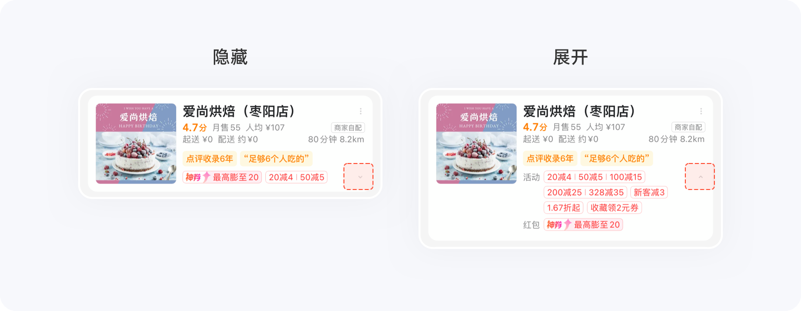 與刪除不同的是,隱藏并沒有刪減選項的數(shù)量,只展示部分常用、高頻的選項,去除其他信息的干擾,方便用戶快速做出決策,而將其他不常用、低頻選項隱藏起來,在需要時系統(tǒng)自動展示、或用戶手動喚出。其實,不管是交互四策略中的隱藏、還是??硕芍械碾[藏,其作用都是通過暫時性地減少信息數(shù)量來提升用戶操作效率。