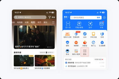 如果大量的選項無法減少,可將重要選項靠前,將其他的隱藏起來,方便用戶決策及降低失誤操作的概率。例如騰訊視頻頂部分類后面的更多圖標、支付寶首頁金剛區(qū)的更多入口,點開后就會發(fā)現(xiàn),里面隱藏了非常多的功能,這樣做能減少用戶認知負荷,提高信息篩選的效率。