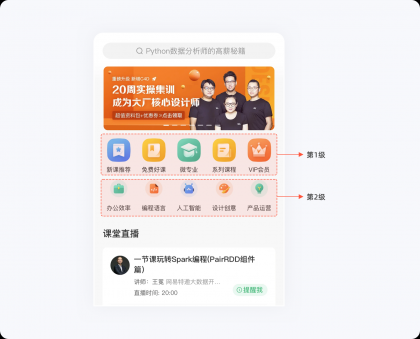 在設(shè)計過程中,如果沒有對功能層級進行劃分,一股腦地將所有功能入口平鋪的話,就需要用戶花費大量的時間和精力來查找需要的功能,無疑是一場災(zāi)難。我們可以通過??硕蓙韮?yōu)化界面功能布局,根據(jù)業(yè)務(wù)的重要性對功能入口進行分類組合,減少用戶的認知及理解成本,以便快速達到目的。