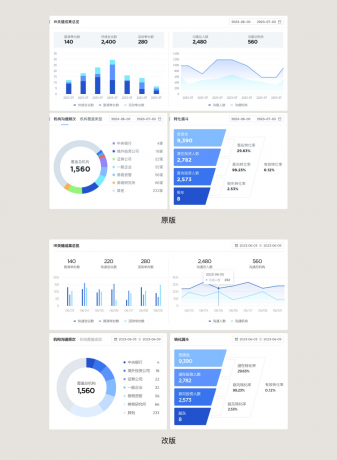 但重要不代表需要過(guò)度傾注和堆疊視覺(jué)元素,過(guò)度的設(shè)計(jì)會(huì)讓界面看起來(lái)有 “飛機(jī)” 敢,不僅不真實(shí)的印象產(chǎn)生了,還會(huì)顯得業(yè)余不夠自信。同時(shí)任何項(xiàng)目中表盤頁(yè)過(guò)度設(shè)計(jì)都會(huì)對(duì)整個(gè)項(xiàng)目造成負(fù)擔(dān),后續(xù)的頁(yè)面要怎么設(shè)計(jì)才能不和它產(chǎn)生隔閡,保持一致性。