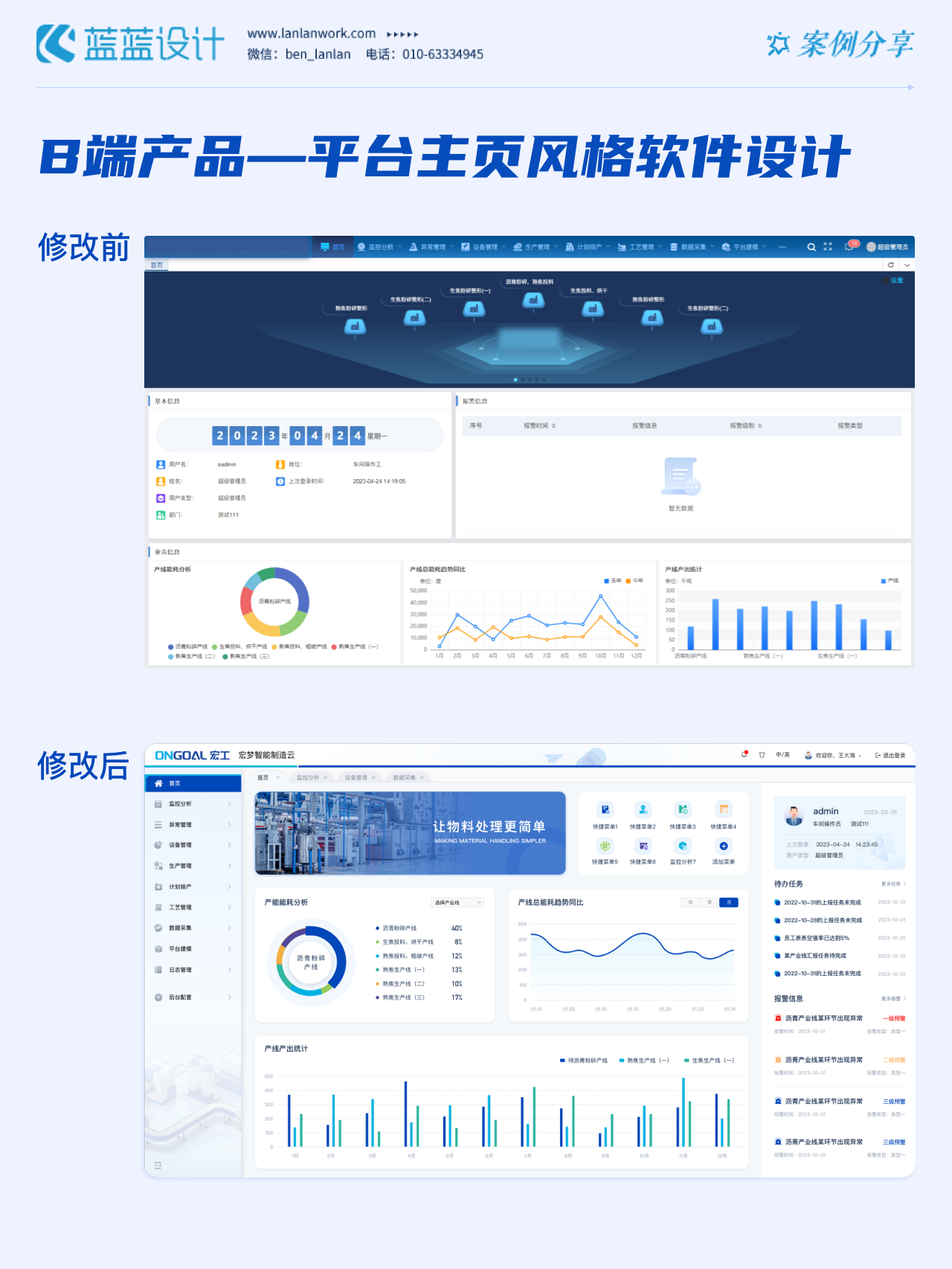hello,大家好!今天藍(lán)藍(lán)要介紹的是我們近期的作品,兩種不同風(fēng)格的B端產(chǎn)品平臺(tái)首頁(yè),一起來(lái)欣賞吧!