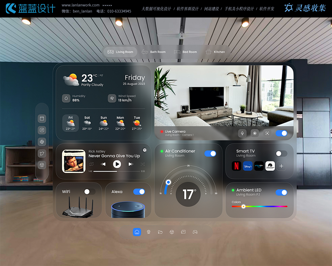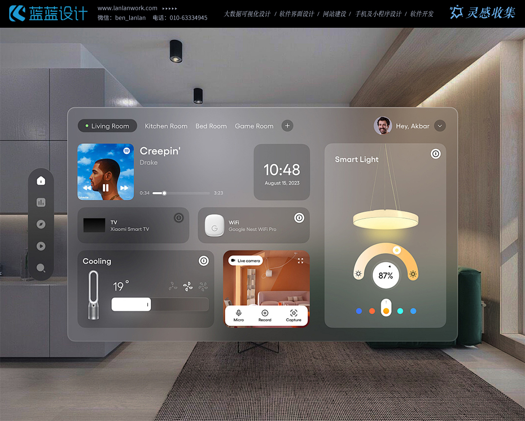 在智能家居領(lǐng)域,大屏UI設(shè)計成為了家庭控制中心的核心界面。通過智能大屏,用戶可以輕松實現(xiàn)對家中各種智能設(shè)備的控制和管理。大屏UI設(shè)計不僅提供了直觀的操作界面,更通過豐富的視覺元素和動畫效果,提升了用戶的交互體驗。用戶只需輕觸屏幕,就能完成燈光調(diào)節(jié)、窗簾開關(guān)、家電控制等操作,讓生活變得更加便捷和智能。