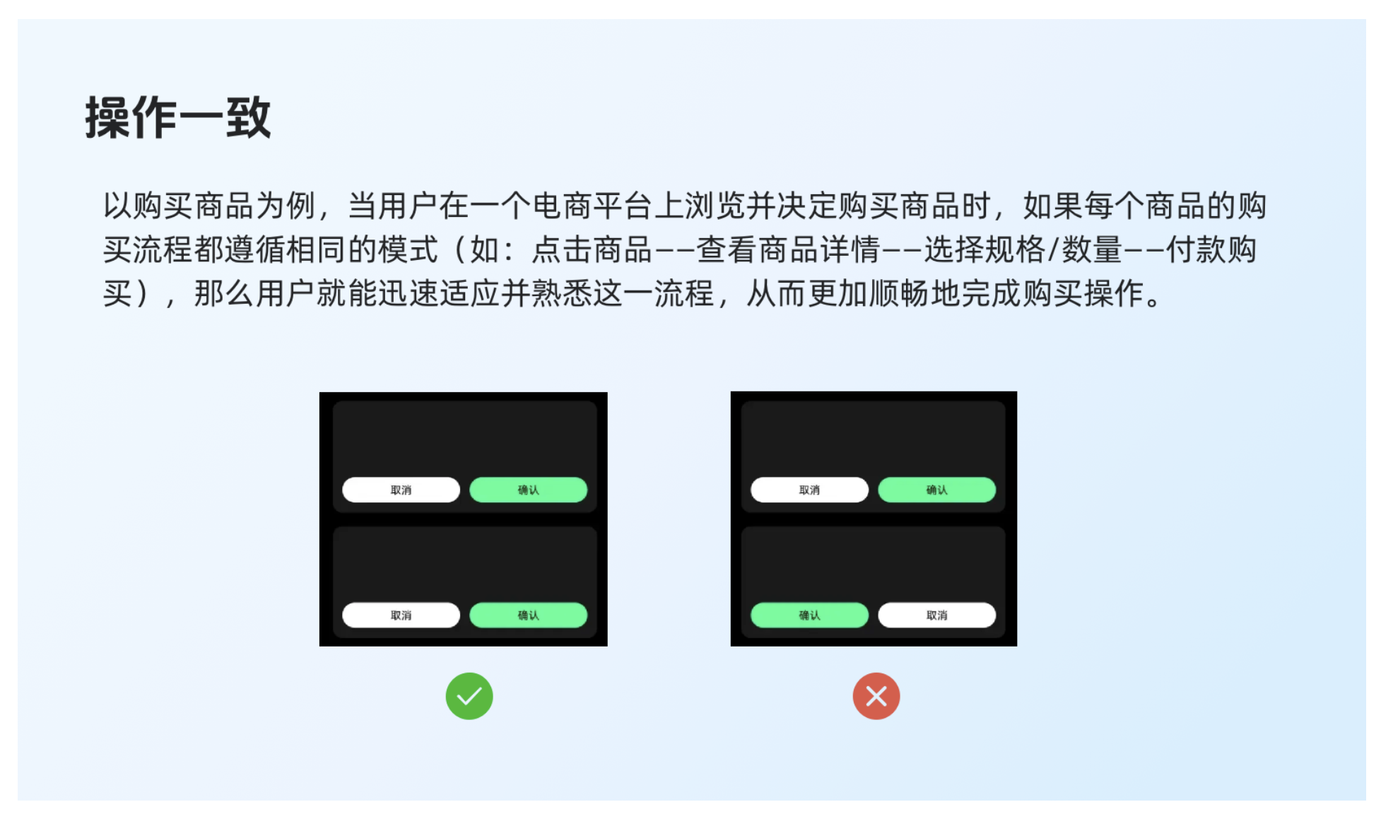 :確保用戶在執(zhí)行相似任務(wù)時,如購買商品、搜索信息或提交表單等,能夠遵循相同的操作流程。這有助于用戶快速適應(yīng)并高效完成任務(wù)。