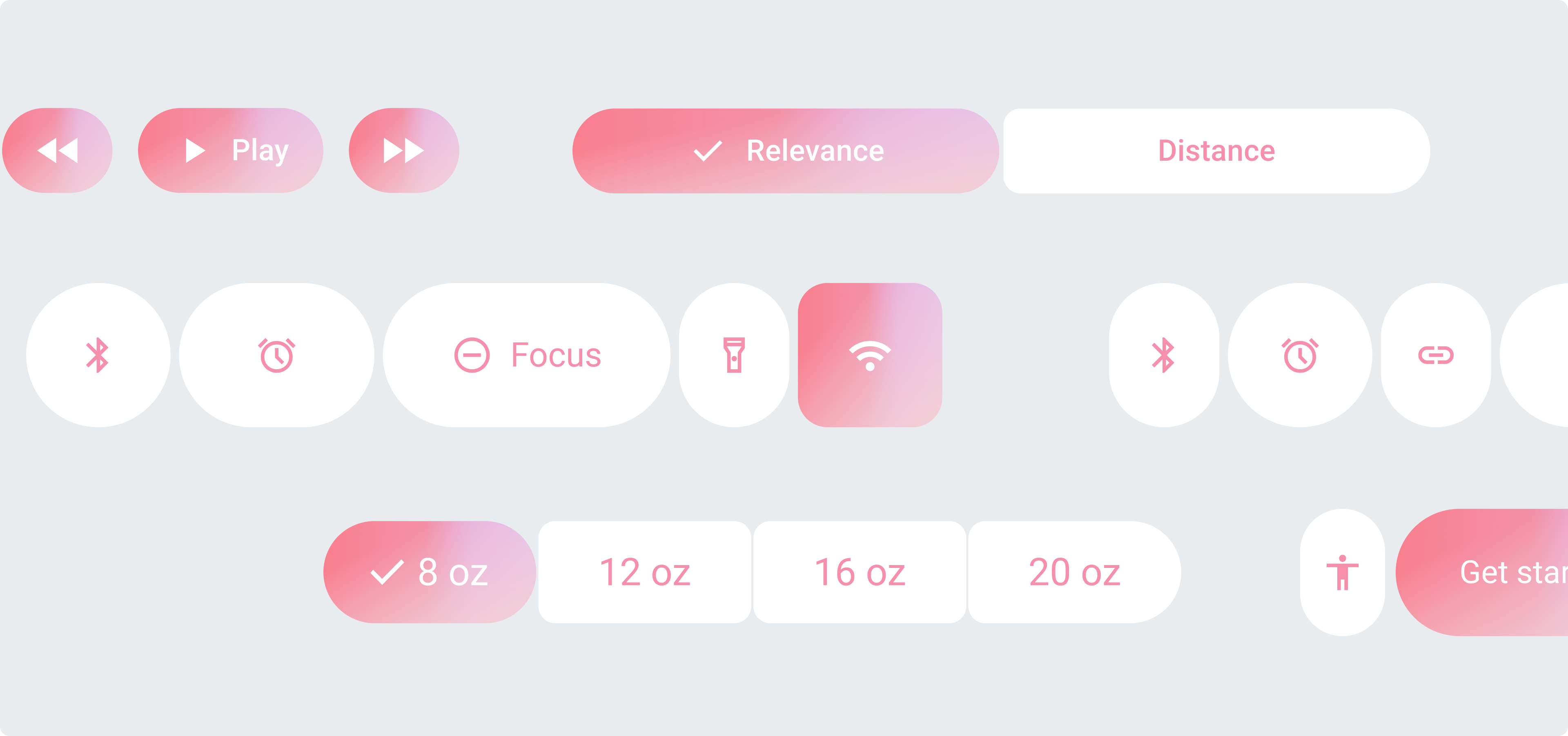 每個按鈕都保持圓潤的形狀,并且按鈕之間有一定的間距。在此組中,選定的按鈕可以改變寬度或形
