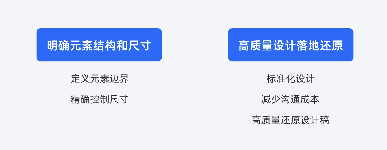 - 明確元素結(jié)構(gòu)和尺寸:清晰劃分元素各組成部分,便于還原設(shè)計稿中的元素結(jié)構(gòu)和尺寸。