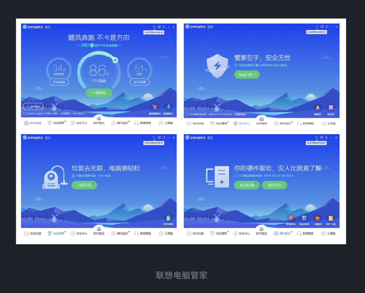 一致性設(shè)計(jì)能降低用戶學(xué)習(xí)成本、提升研發(fā)效率。布局一致性要保持統(tǒng)一結(jié)構(gòu),減少用戶對(duì)新結(jié)構(gòu)的思考負(fù)擔(dān)。色彩一致性要求主色調(diào)統(tǒng)一傳遞品牌印象,功能性色彩形成固定規(guī)則。操作一致性是指同類功能操作邏輯統(tǒng)一,降低學(xué)習(xí)成本。反饋一致性要讓系統(tǒng)對(duì)同類操作的反饋方式統(tǒng)一,讓用戶與系統(tǒng) “溝通順暢”。文字一致性要求文字大小、顏色、風(fēng)格統(tǒng)一,避免用戶因 “格式混亂” 產(chǎn)生誤解。聲音一致性要使操作提示音固定,強(qiáng)化用戶對(duì)操作結(jié)果的預(yù)判。聯(lián)想電腦管家的優(yōu)化加速、垃圾清理等模塊,在布局、文字、反饋方式上保持一致,既提升了用戶體驗(yàn),也降低了研發(fā)成本。