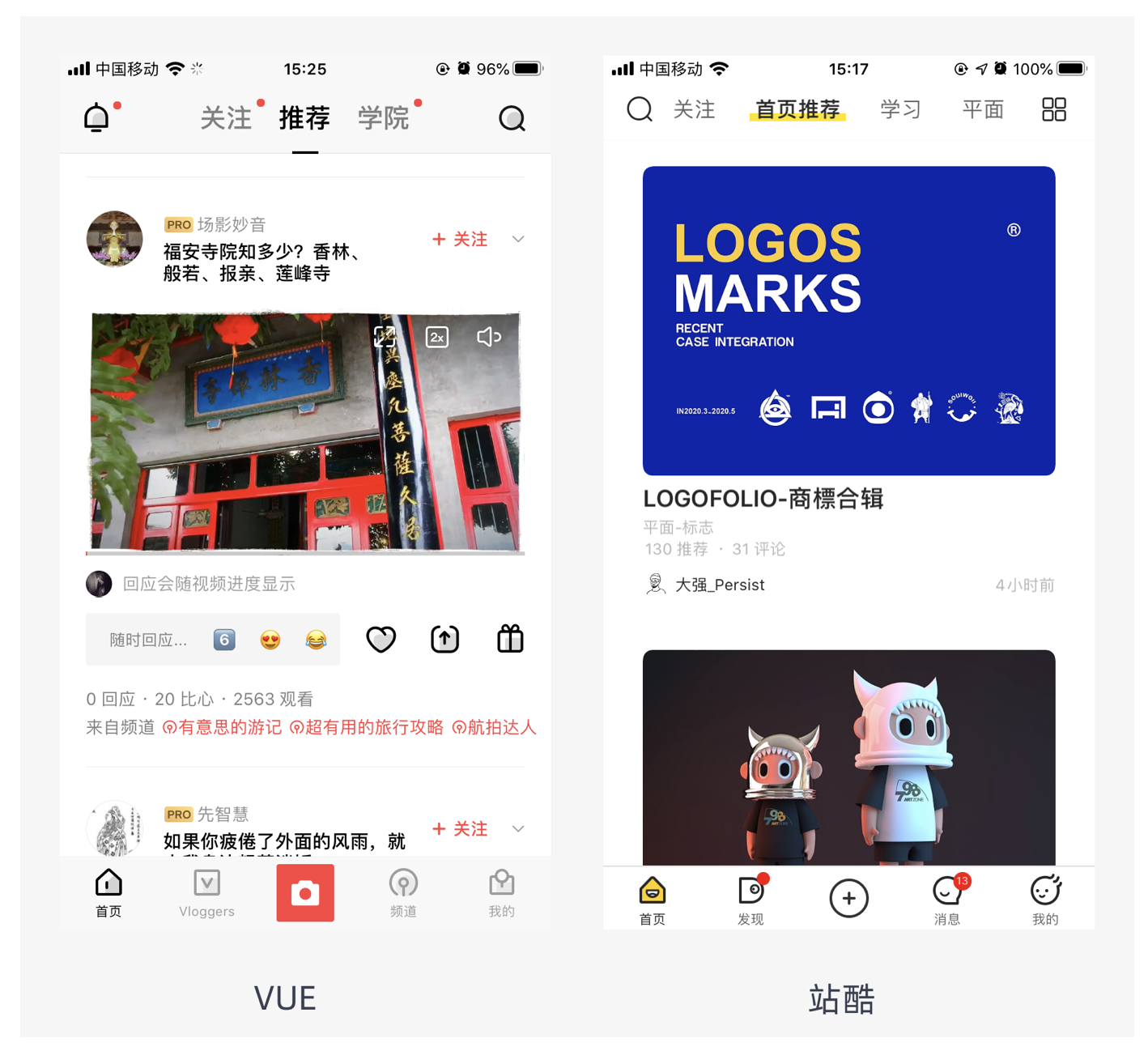 - 展示圖片尺寸固定:不管用戶上傳的是橫圖還是豎圖,展示圖片的比例始終固定,常用的比例有 1:1、3:2、4:3、16:9 等。這種適配方式圖片占用空間小,可提高用戶的閱讀效率,適合想要提高用戶閱讀效率的產(chǎn)品,如站酷的部分頁(yè)面,采用固定比例展示圖片,讓用戶能在有限空間內(nèi)瀏覽更多內(nèi)容。