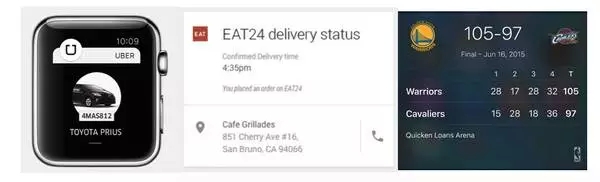 通知會以更「智能」的形式出現(xiàn),不會是現(xiàn)在的小廣告推送形式,也不會是類似 Widget 常駐的形式,而更接近「手表屏幕」大小,按需出現(xiàn),可交互的、功能相對完整的界面(即使是在手機上而不是手表上),用戶甚至可以永遠(yuǎn)不打開一個 App,而能夠享受 App 提供的全部功能。