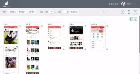 Demoo是基于web設(shè)計(jì)搭建的一款在瀏覽器內(nèi)進(jìn)行可視化操作的工具。通過上傳平面稿件,用手勢或觸點(diǎn)熱區(qū)的方式把界面關(guān)系連接起來,加入連接轉(zhuǎn)場,輸出一份仿真APP的、可體驗(yàn)操作的設(shè)計(jì)方案,滿足在電腦、會議投影現(xiàn)場及手機(jī)上體驗(yàn)操作。點(diǎn)擊這里可查看更詳細(xì)介紹:《為移動(dòng)端方案設(shè)計(jì)演示而生的DEMOO》