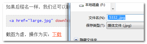 例如,我們希望點(diǎn)擊“下載”鏈接下載圖片而不是瀏覽,直接增加一個(gè)download