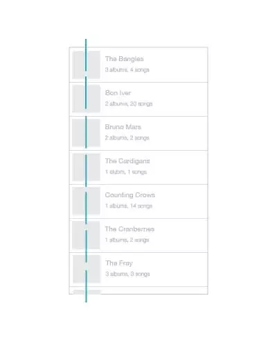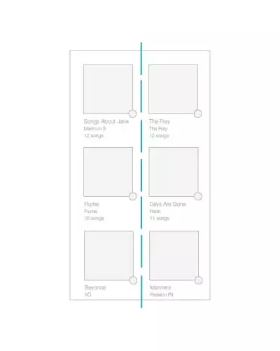 軸最常見(jiàn)于對(duì)稱(chēng)元素的使用,當(dāng)元素被布置成軸對(duì)稱(chēng)的布局的時(shí)候,會(huì)給人有序感。就像生活中絕大多數(shù)的事情一樣,我們更傾向于享受有序的的東西,它們令人感覺(jué)平穩(wěn)、舒適、平易近人。最簡(jiǎn)單的一個(gè)例子就是iTunes 程序中的專(zhuān)輯列表的設(shè)計(jì),所有的專(zhuān)輯列表在界面的左側(cè)保持對(duì)齊,圍繞虛線軸軸對(duì)稱(chēng)。