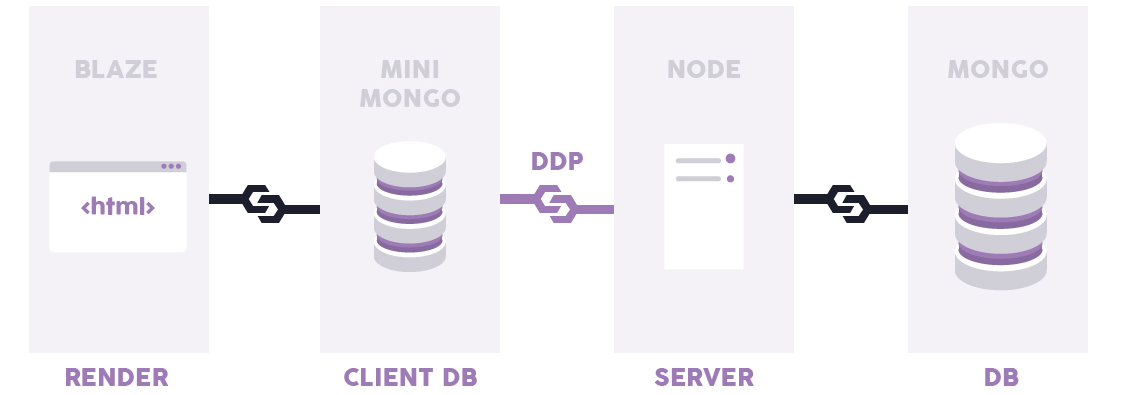 此外,Meteor特別適合于那些想要構建實時web app的開發(fā)人員。所有從數(shù)據(jù)庫到模板的app層都會自動更新。這是它的工作原理——