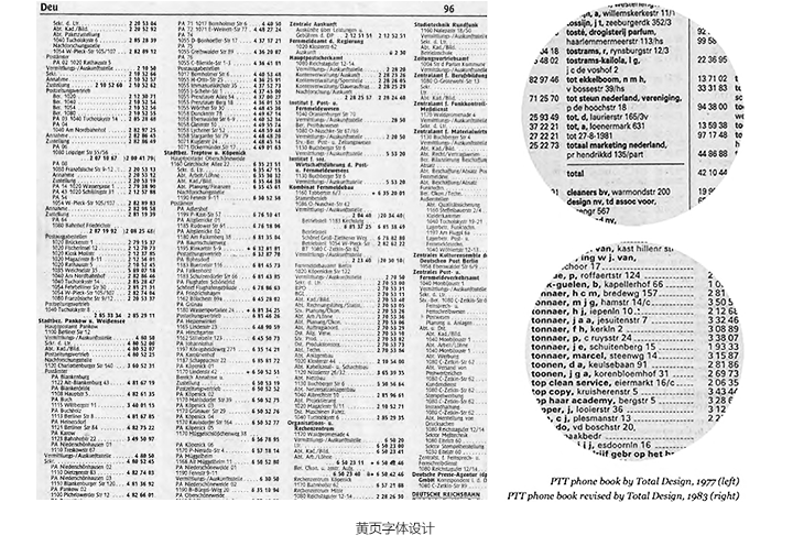 在信息量極大的黃頁(yè)上,為便于觀者讀取信息而做的字體設(shè)計(jì);