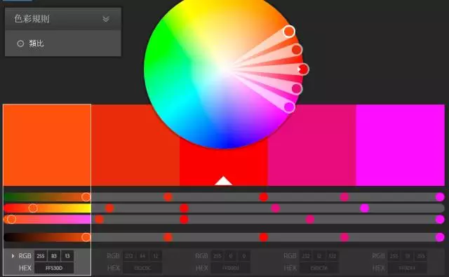adobe,這個(gè)是Adobe公司出的,他提供了多種配色方案。我們點(diǎn)擊圓盤中間的點(diǎn),就可以調(diào)整出我們想要的配色方案:https://color.adobe.com/zh/create/color-wheel