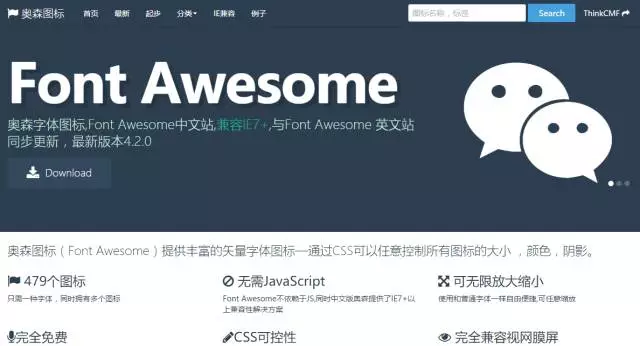 奧森圖標(biāo)(Font Awesome),提供豐富的矢量字體圖標(biāo)—通過CSS可以任意控制所有圖標(biāo)的大小 ,顏色,陰影:http://www.thinkcmf.com/font/search.html
