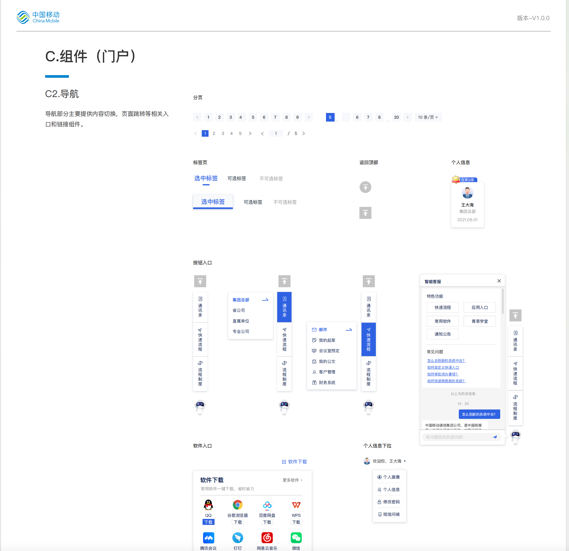 以下是藍(lán)藍(lán)設(shè)計(北京蘭亭妙微)給中國移動研究院設(shè)計三套軟件,制作的部分UI規(guī)范。