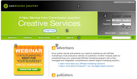 Commission Junction 的漸變運(yùn)用遠(yuǎn)沒有Media Temple的細(xì)致,而且采用了過于豐富 的漸變類型: