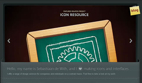 Icon Designer 通過旋轉(zhuǎn)某些元素讓自己與眾不同。這一頁面很容易成為稀松平常的無聊之作,但簡單的幾個(gè)旋轉(zhuǎn)讓它趣味十足。