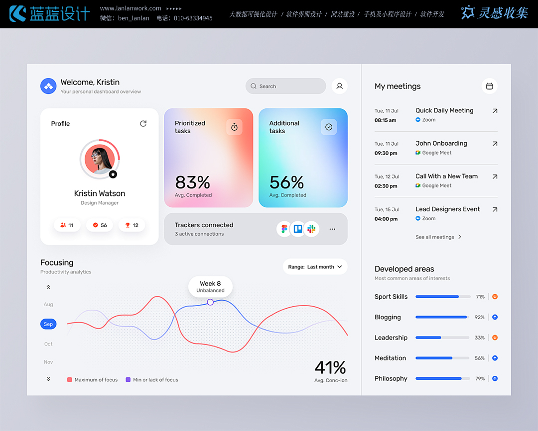 藍藍設計(www.ei666.cn )是一家專注而深入的界面設計公司,為期望卓越的國內外企業(yè)提供卓越的大數(shù)據(jù)可視化界面設計、B端界面設計、桌面端界面設計、APP界面設計、圖標定制、用戶體驗設計、交互設計、UI咨詢、高端網站設計、平面設計,以及相關的軟件開發(fā)服務,咨詢電話:01063334945。我們建立了一個微信群,每天分享國內外優(yōu)秀的設計,有興趣請加入一起學習成長,咨詢及進群請加藍小助微信ben_lanlan。