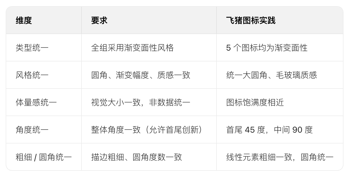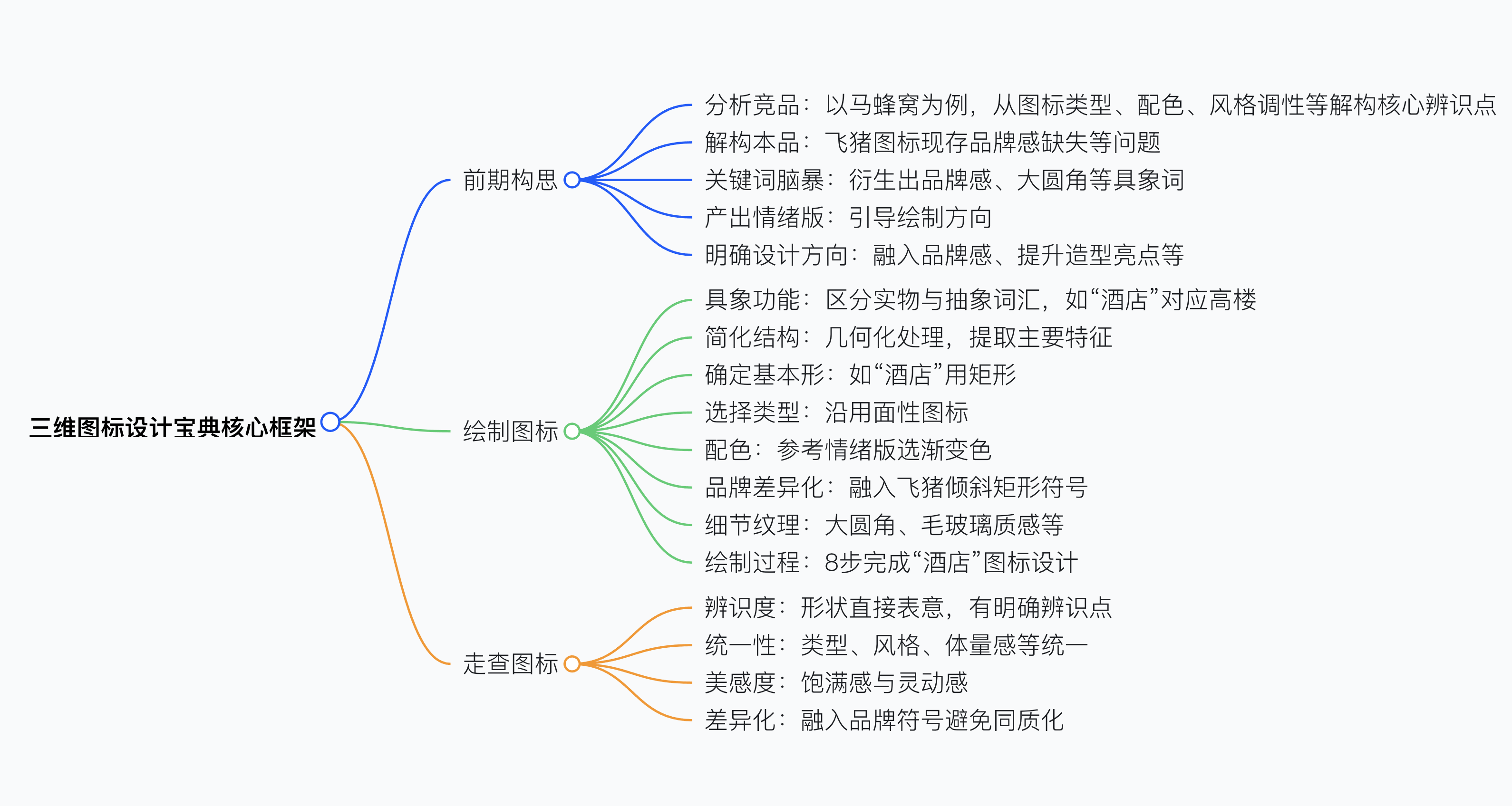 三维图标设计宝典 http://www.ei666.cn/blog/post-13543.html  “三维图标设计宝典” Ҏ(gu)论,从前期构思(分析竞品如马蜂窝与本品飞猪的图标cd、配艌Ӏ风格及核心辨识点,通过关键词脑暴锁?“品质、活力、青?rdquo; 方向q出情l版Q、绘制图标(兯功能、简化结构、确定基本ŞQ融入飞猪品牌超U符Pd毛玻璃质感等l节Q到走查图标Q从辨识度、统一性、美感度、差异化四方面检查,如类型、风根{体量感l一Q融入品牌符号增强差异化Q的完整程Q助设计师提升过E率?/p>