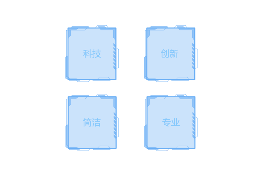 界面整體采用深藍背景,通過背景圖案展示界面的縱深感。富有科技感的邊框和線條來凸顯界面的科技感。數(shù)據(jù)展示和控件在主色調(diào)的基礎(chǔ)上運用一些鮮明色作為點綴,即豐富了頁面也突出了要展示的信息。