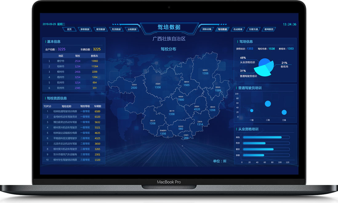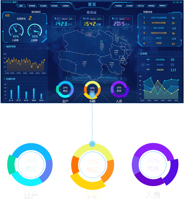 行業(yè)態(tài)勢展示了道路交通運輸行業(yè)的基礎(chǔ)數(shù)據(jù)和走勢,實時反映行業(yè)的運行狀態(tài),將采集的數(shù)據(jù)形象化、直觀化、具體化。為了加強某些重點工作,我們還需加入“聯(lián)網(wǎng)聯(lián)控”、“互聯(lián)互通”等相關(guān)專題。系統(tǒng)所具備的數(shù)據(jù)管理能力可將現(xiàn)有的數(shù)據(jù)進行有效的整合,快速準(zhǔn)確地提供報表并提出決策依據(jù)。